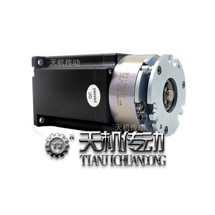东莞天机传动(台湾天机牌)生产厂家制造销售的断电刹车器又称电磁失电制动器,为通电电磁吸合,断电摩擦制动式制动器,产品安装操作简单,保养维护容易。并通过ISO9001国际质量认证和CE认证,质量保证。断电刹车器原理参数如下:断电刹车器由磁轭,励磁线圈、弹簧、摩擦盘、衔铁、花键轴套、安装螺钉、调整(空心)螺钉、手动释放装置(或螺钉释放装置)等组成。制动器安装在电动机的后端盖上(或设备的法兰盘上);调整安装螺钉到规定的气隙值;花键轴套固定于电机轴上,其外齿与摩擦盘的内花健齿配合,工作时传递力矩,摩擦盘在花键轴套上能轴向移动。当断电刹车器的励磁线圈通电时,线圈产生磁场将衔铁吸向磁轭,则衔铁与摩擦盘脱离,这时电机轴带着摩擦盘正常转动;当线圈断电时,磁通消失,衔铁被磁轭释放,弹簧施压于衔铁,将摩擦盘紧紧的压在电机的后端盖上 ,产生摩擦力而达到制动的目的。